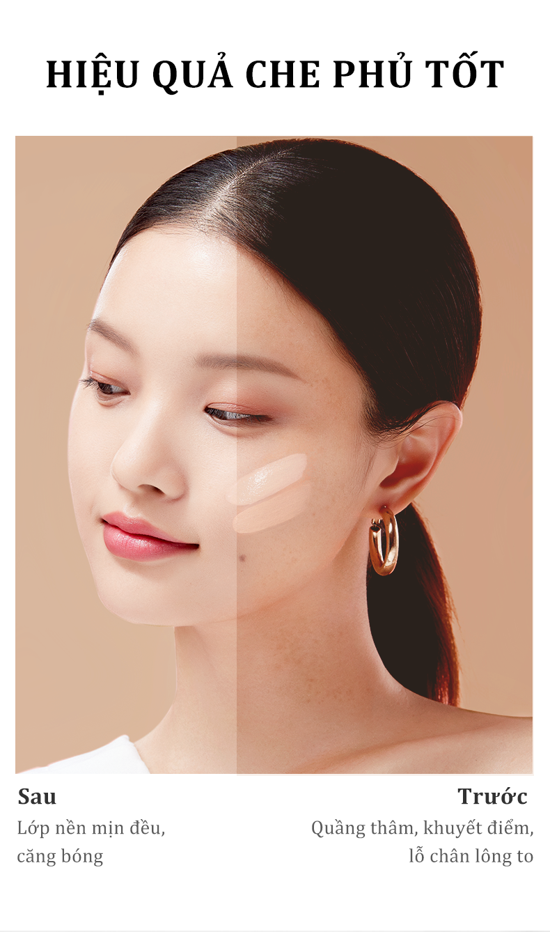 - Lớp lưới đàn hồi hai lớp độc đáo: Thiết kế lớp lưới kép giúp che phủ hiệu quả các khuyết điểm và lỗ chân lông, mang lại lớp nền mịn màng, tự nhiên mà vẫn nhẹ nhàng, không gây bí da.