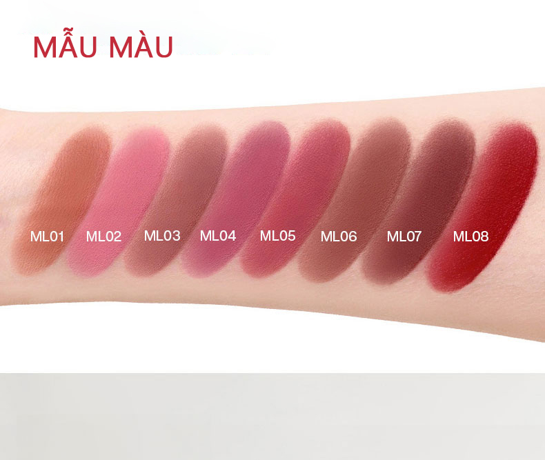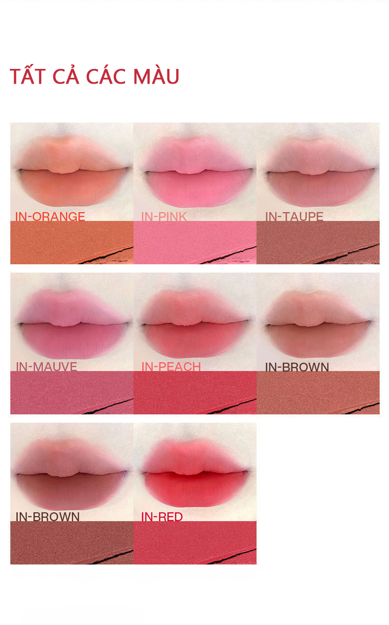 Tất cả các màu đều mang sắc mờ mịn, không gây khô môi hay bột màu, cực kỳ phù hợp với xu hướng trang điểm Hàn – Trung hiện nay.