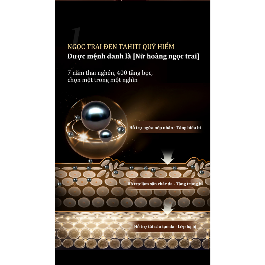 Thành phần chính là ngọc trai đen Tahiti, nổi tiếng với khả năng nuôi dưỡng da ở cả 3 tầng: