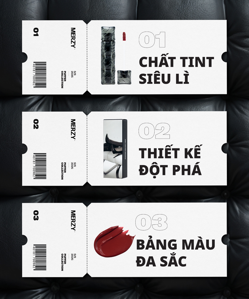 Merzy nổi tiếng với chất son tint lì lâu trôi, và Puffer Velvet Tint cũng không ngoại lệ. Chất son mịn, nhẹ, dễ tán, tạo hiệu ứng môi mềm mại như nhung. Nhờ công thức cải tiến, son vừa giữ được độ lì bền màu nhiều giờ đồng hồ, vừa bổ sung độ ẩm giúp môi không bị khô hay nứt nẻ.