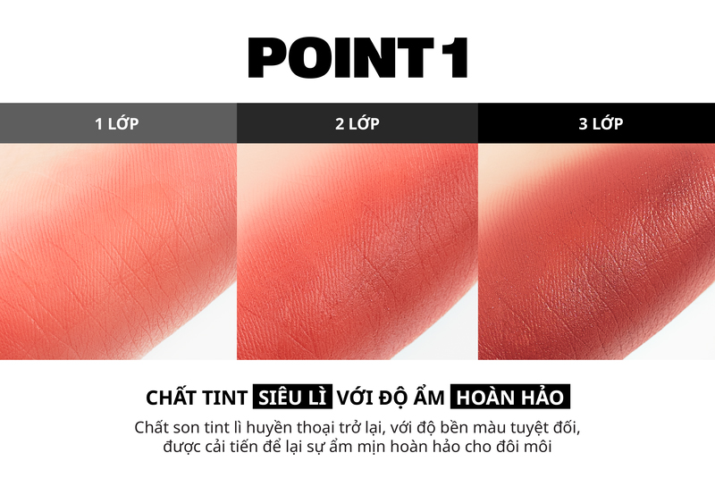 - Chất tint siêu lì, lên màu chuẩn ngay từ lần thoa đầu tiên