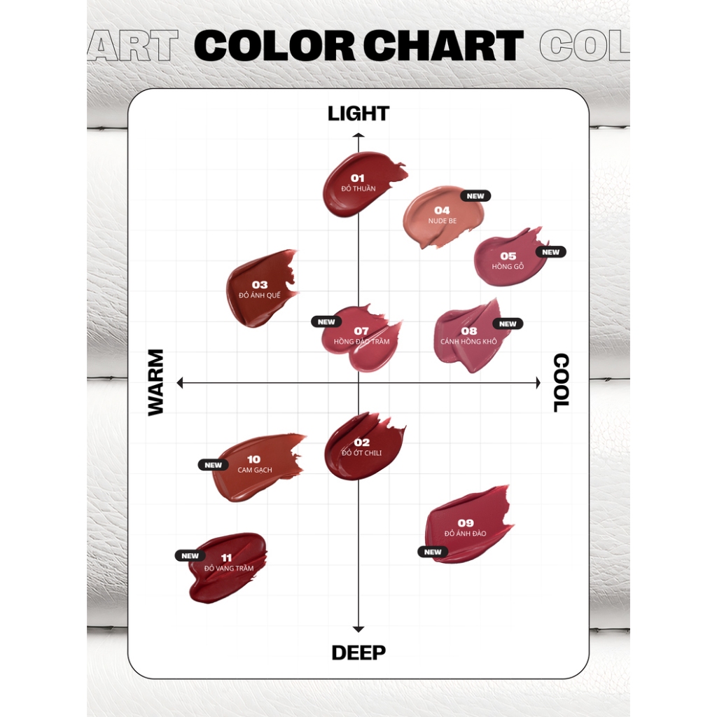 - Bảng màu hợp xu hướng: Sản phẩm có đa dạng màu son, phù hợp với nhiều tone da và phong cách trang điểm, đặc biệt được phát triển riêng cho làn da Châu Á.