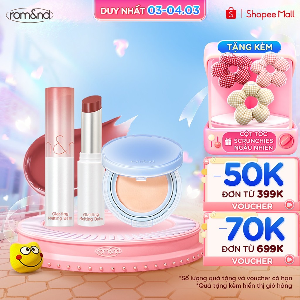 [Combo Ve-easy] Son dưỡng màu tint Romand Glasting Melting Balm 3.5g + Phấn nước Romand Bare Water Cushion 20g