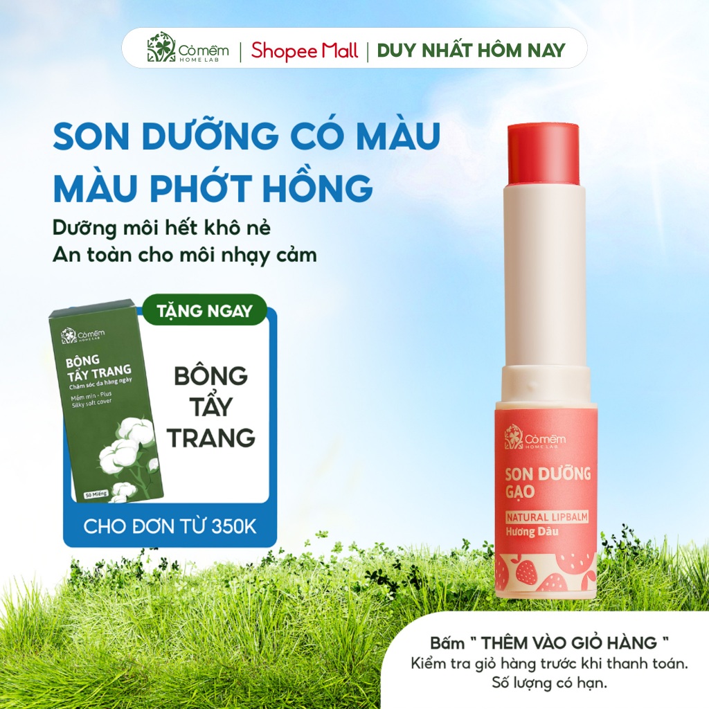 Son dưỡng môi có màu gạo hương dâu mềm môi Cỏ Mềm 3,6g
