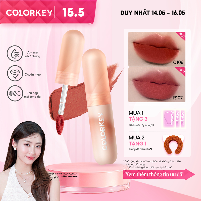 Son môi Colorkey Lip Mousse Lip Mud màu nhung mờ 2g