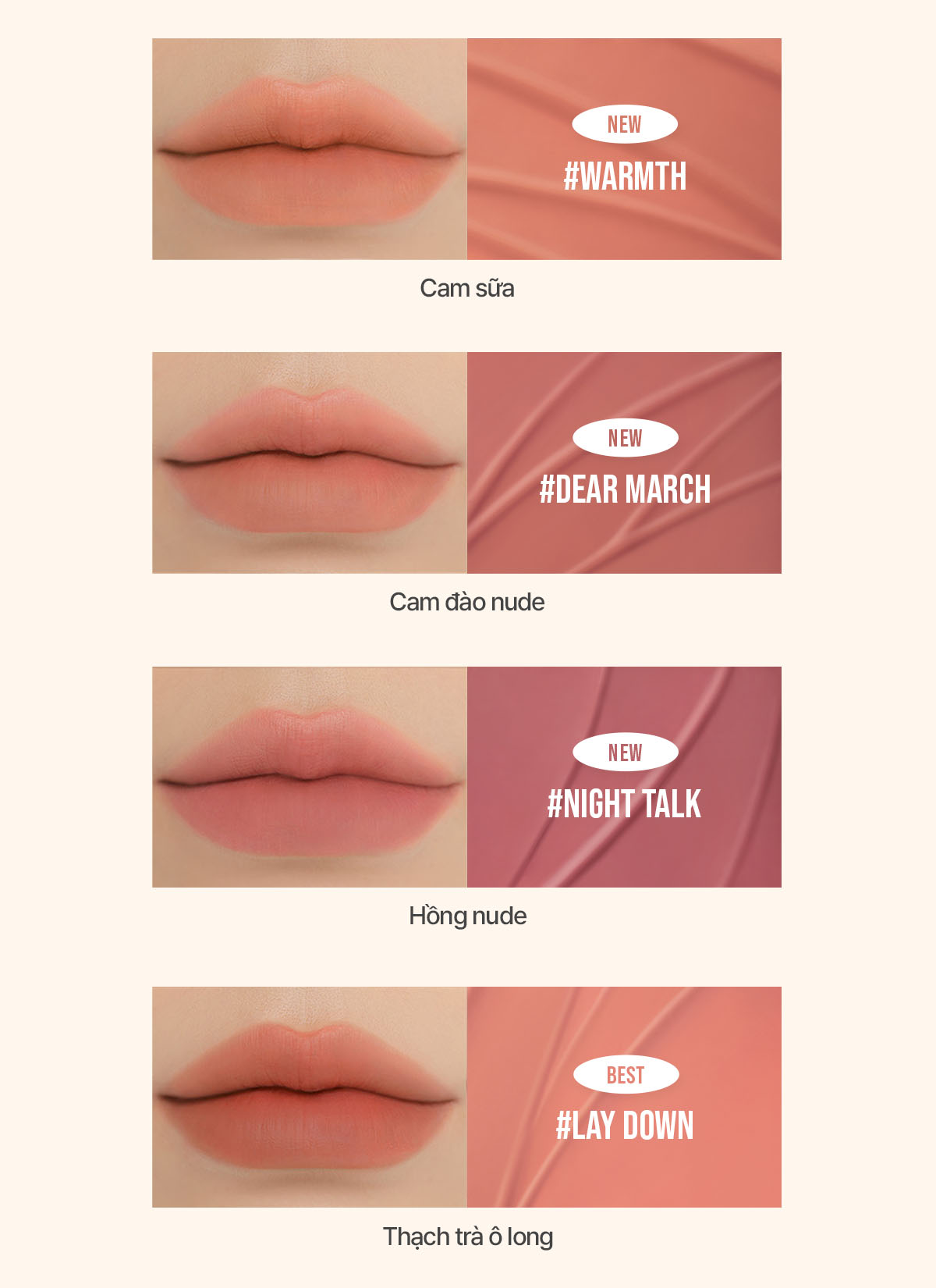 Hiệu ứng mờ ảo của Son Kem 3CE Blur Water Tint là điểm nhấn đặc biệt, giúp tạo nên vẻ đẹp tự nhiên và quyến rũ. Màu son không quá nổi bật nhưng vẫn đủ để làm nổi bật gương mặt, phù hợp với mọi phong cách trang điểm từ nhẹ nhàng đến cá tính.