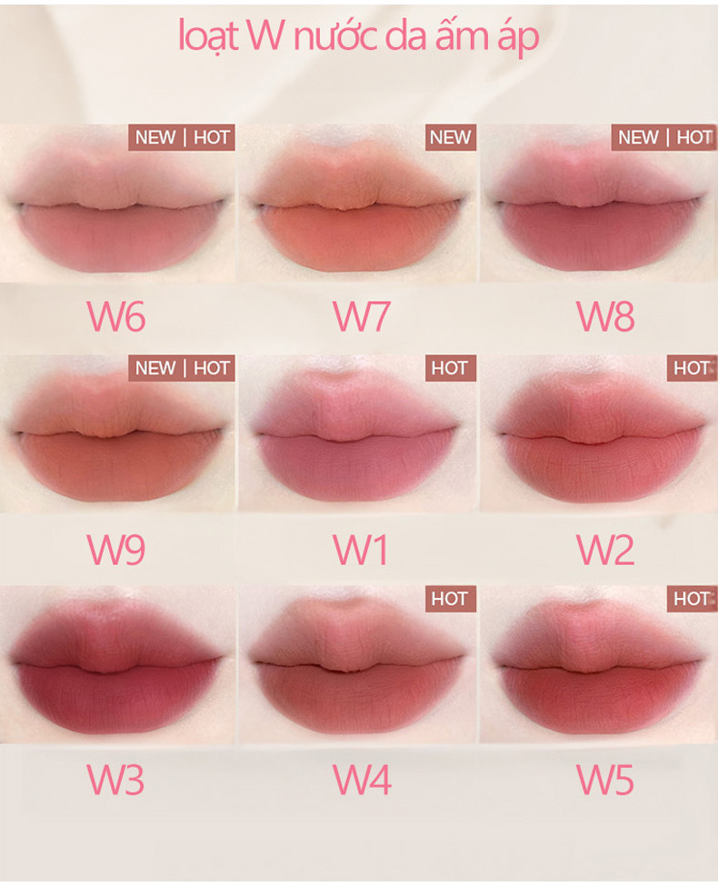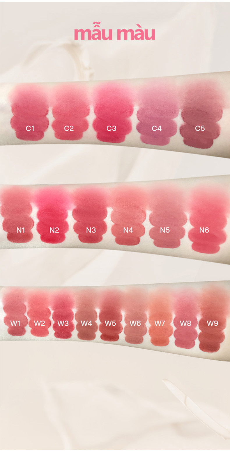 - Hiệu ứng trang điểm mờ nhẹ, tự nhiên: Son tạo hiệu ứng mịn mờ, nhẹ và mỏng hơn, giúp đôi môi trông mềm mại, sang trọng mà vẫn giữ được nét trẻ trung.