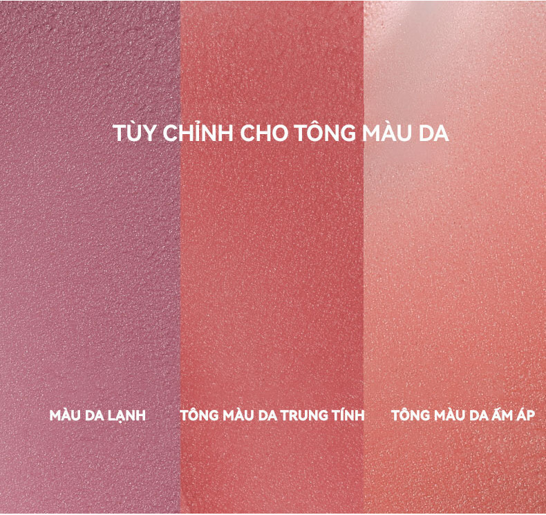 - Phù hợp với nhiều tông da: Sản phẩm có thể tùy chỉnh theo tông da, dễ dàng phân biệt giữa tông ấm và tông lạnh, mang lại vẻ đẹp tự nhiên, nổi bật cho từng cá nhân.