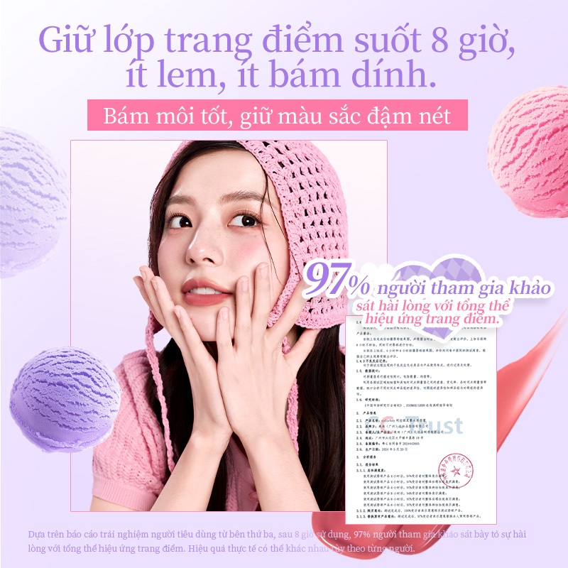- Lớp son mềm mịn, lì lâu trôi: Sau khi tạo màng, son chuyển thành lớp lì mềm mịn, giữ màu lâu suốt nhiều giờ đồng hồ, phù hợp cho cả ngày dài hoạt động.