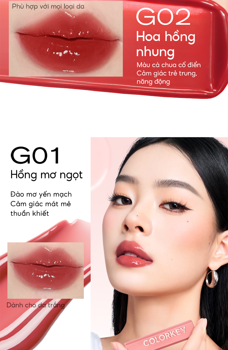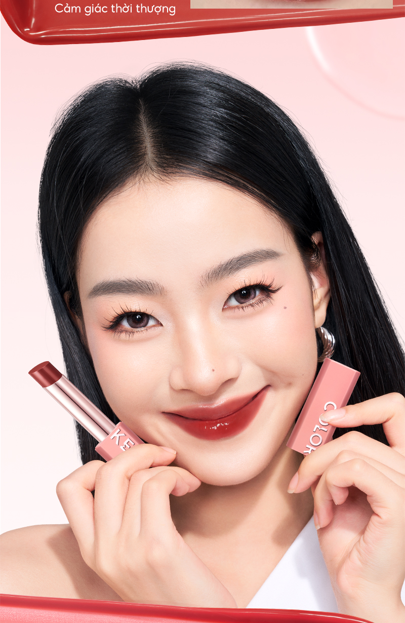 - Kết hợp sản phẩm khác nếu cần: Để tăng hiệu ứng trang điểm, bạn có thể kết hợp với chì kẻ viền môi hoặc một lớp son lì cùng tông màu ở dưới, sau đó phủ lớp son bóng COLORKEY lên trên. Cách này giúp định hình môi rõ nét và tạo hiệu ứng ombre thời thượng.