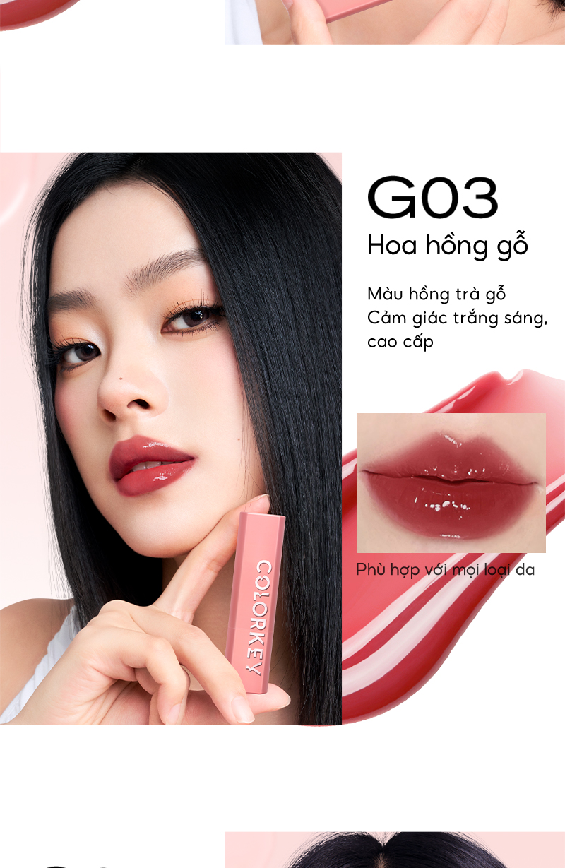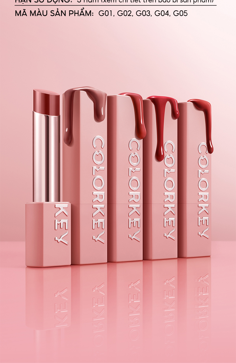 COLORKEY 3g hiện đang có bảng màu đa dạng, từ các gam hồng, cam, đỏ tươi đến các tông nude nhẹ nhàng, trendy. Bạn có thể dễ dàng chọn được màu son phù hợp với: