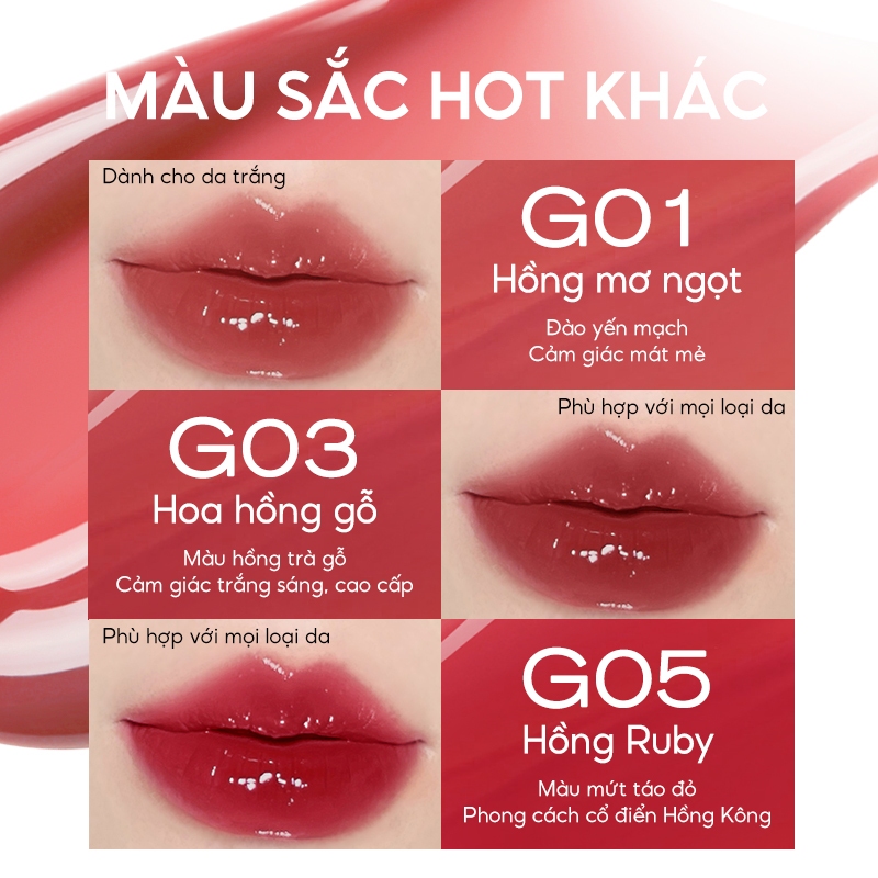 | Không bết dính | Chất son mịn, mượt, nhẹ môi |