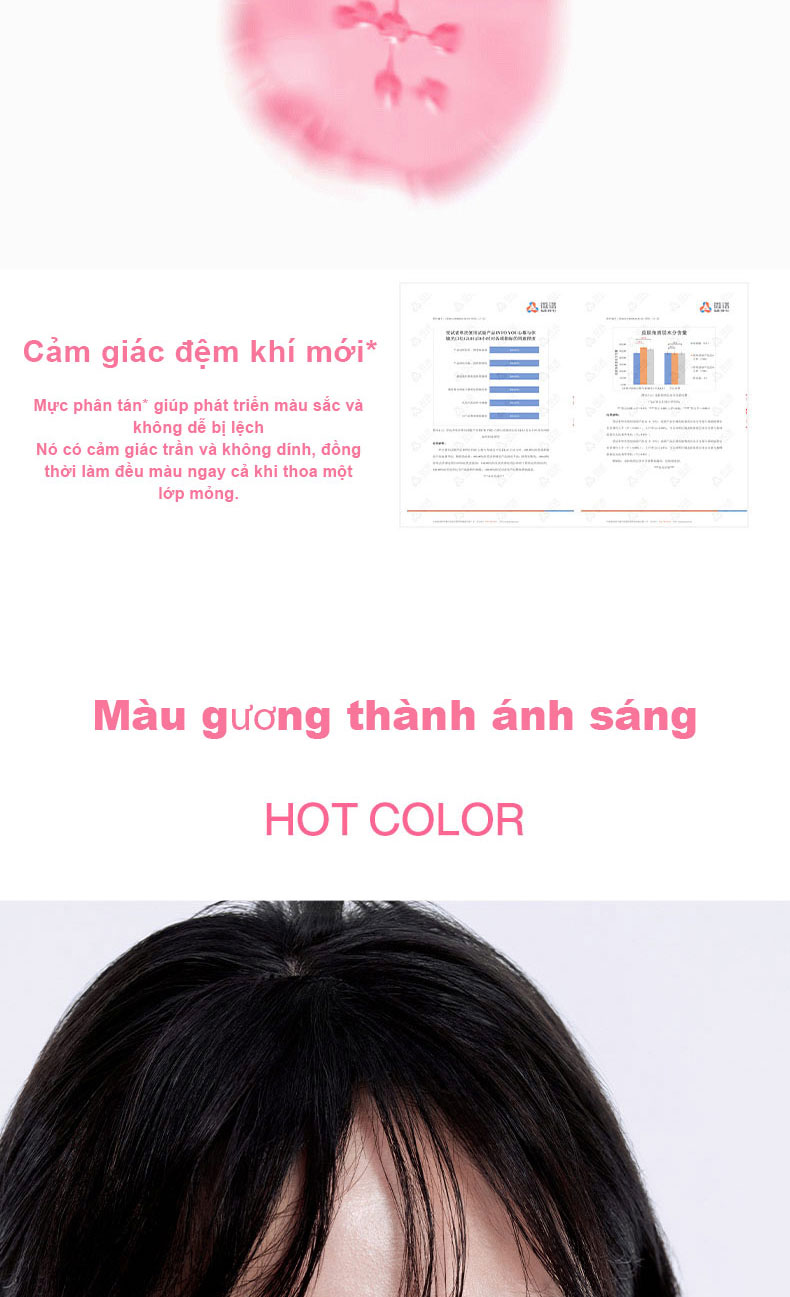 - Tác dụng: Lâu trôi, dưỡng ẩm, không dính cốc, nâng tông da tự nhiên