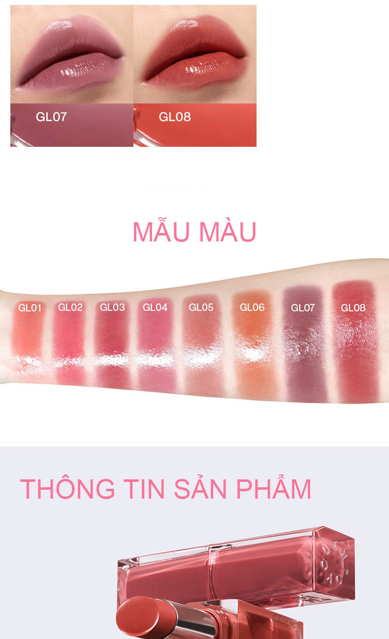 Dưỡng ẩm tự nhiên: Son có thành phần dưỡng nhẹ, giúp giữ môi mềm mại và căng mịn suốt ngày dài.