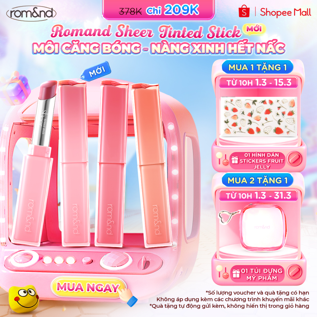 [Romand x KOL] Son thỏi mềm mịn bền màu Hàn Quốc Romand Sheer Tinted Stick